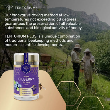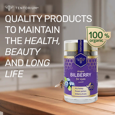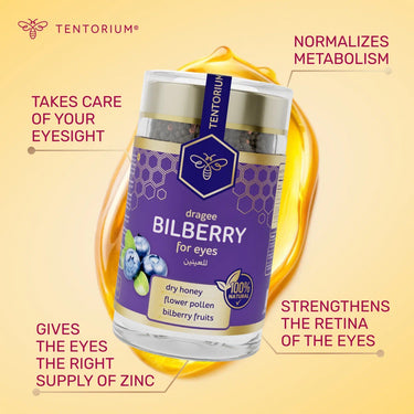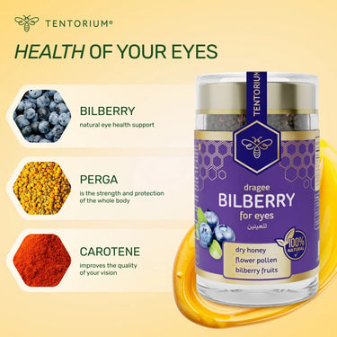 Bilberry with beebread (perga) helps improve eyesight and supports overall health — including the heart, digestive system, and blood sugar levels, while aiding detox.